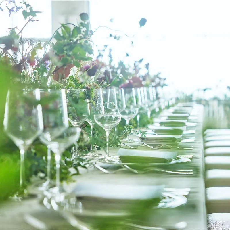 【専属フローリストによる会場デザイン】旧居留地にフラワーショップも構えるフローリストが手掛けるテーブルコーディネートを体験いただけます。パーティテーマに合わせたテーブルクロスやペーパーアイテムも必見。
