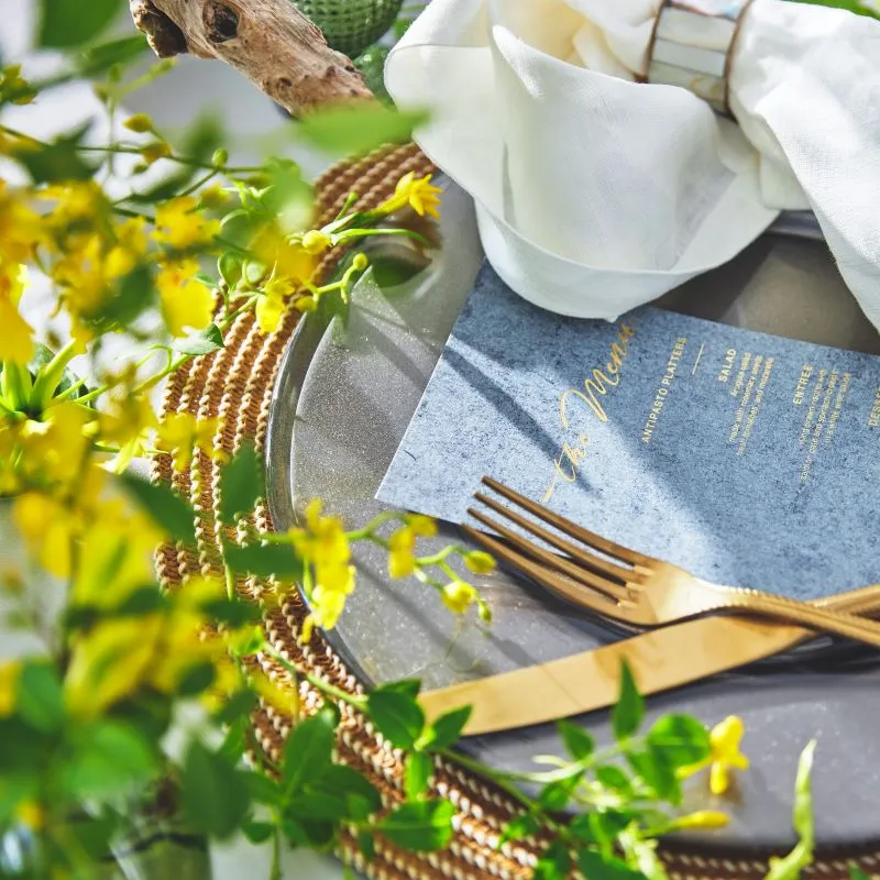 【専属フローリストによる会場デザイン】旧居留地にフラワーショップも構えるフローリストが手掛けるテーブルコーディネートを体験いただけます。パーティテーマに合わせたテーブルクロスやペーパーアイテムも必見。